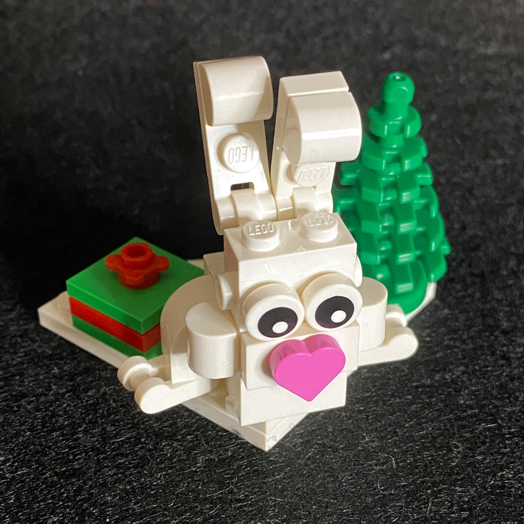 Celebrate the season with this festive little bunny. Send your wishes for “Hoppy Holidays” to any friend or family member that loves to build with Lego. The pieces to build the bunny are included with the card. Just use the photo to guide the building of the snowy scene.